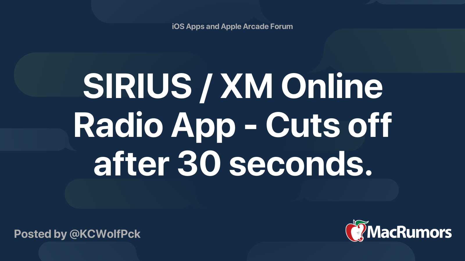 Sirius Xm Online Radio App Cuts Off After 30 Seconds Macrumors Forums